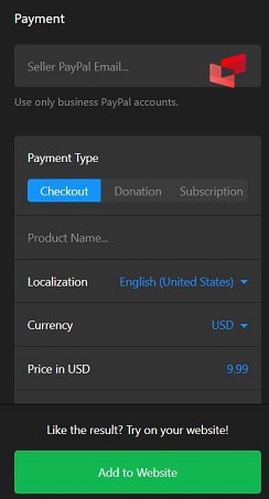 با استفاده از elfsight حتی نیازی به رفتن به سایت پی پال نیست و مستقیماً از این سایت دکمه برای شما ایجاد میشود. برای این کار در قسمت بالا ایمیل حساب پی پال خود را وارد کنید.