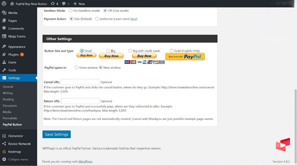 پس از نصب و فعالسازی این افزونه، در قسمت تنظیمات وردپرس گزینه تنظیمات افزونه “PayPal Buy Now” برای شما نمایش داده خواهد شد.