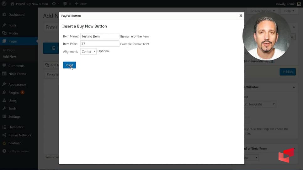 حال در قسمت صفحات، گزینه دکمه پی پال قابل رویت است. روی دکمه کلیک کنید و اطلاعاتی مانند نام محصول و قیمت آن را مشخص نمایید. پس از ذخیره تغییرات، درگاه پرداخت پی پال در سایت شما قرار میگیرد.