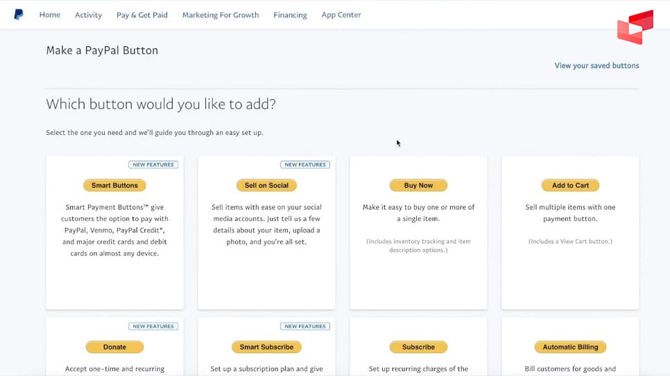 پس از ایجاد Client ID و Secret Key نوبت به دریافت دکمه پرداخت پی پال میرسد. این دکمهها مستقیماً توسط پی پال صادر میشوند. برای این کار وارد حساب پی پال خود شوید و به بخش “PayPal Buttons” بروید. در این قسمت میتوانید از بین انواع دکمههای آماده، گزینه مناسب را انتخاب کنید. هر دکمه دارای کد HTML مخصوص خود است و کدهای آن قابلجایگزینی با یکدیگر نیستند. رایجترین دکمهها شامل گزینههای “Buy Now” (خرید فوری) و “Add to Cart” (افزودن به سبد خرید) هستند. پس از انتخاب دکمه مورد نظر، باید اطلاعات مرتبط با همان دکمه مانند نام محصول، قیمت، و تنظیمات ارز را وارد کنید.
