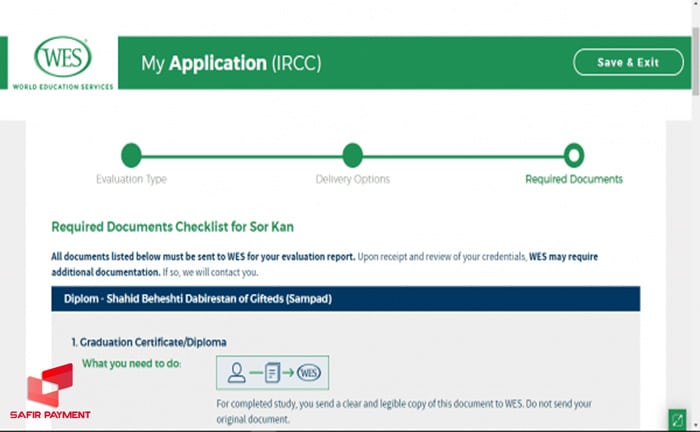 جهت ارسال مدارک تحصیلی خود به WES لازم است تا مراحل زیرا طی کنید: